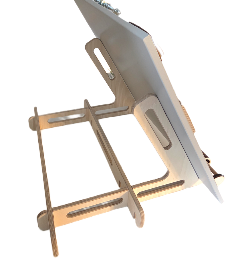 Produkten har ett stativ som monteras enkelt så att den går att ställa upp på ett bord