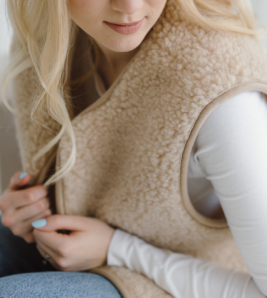 Vid behov kan västen tvättas i maskin på ullprogram (30 °C) med flytande ulltvättmedel.